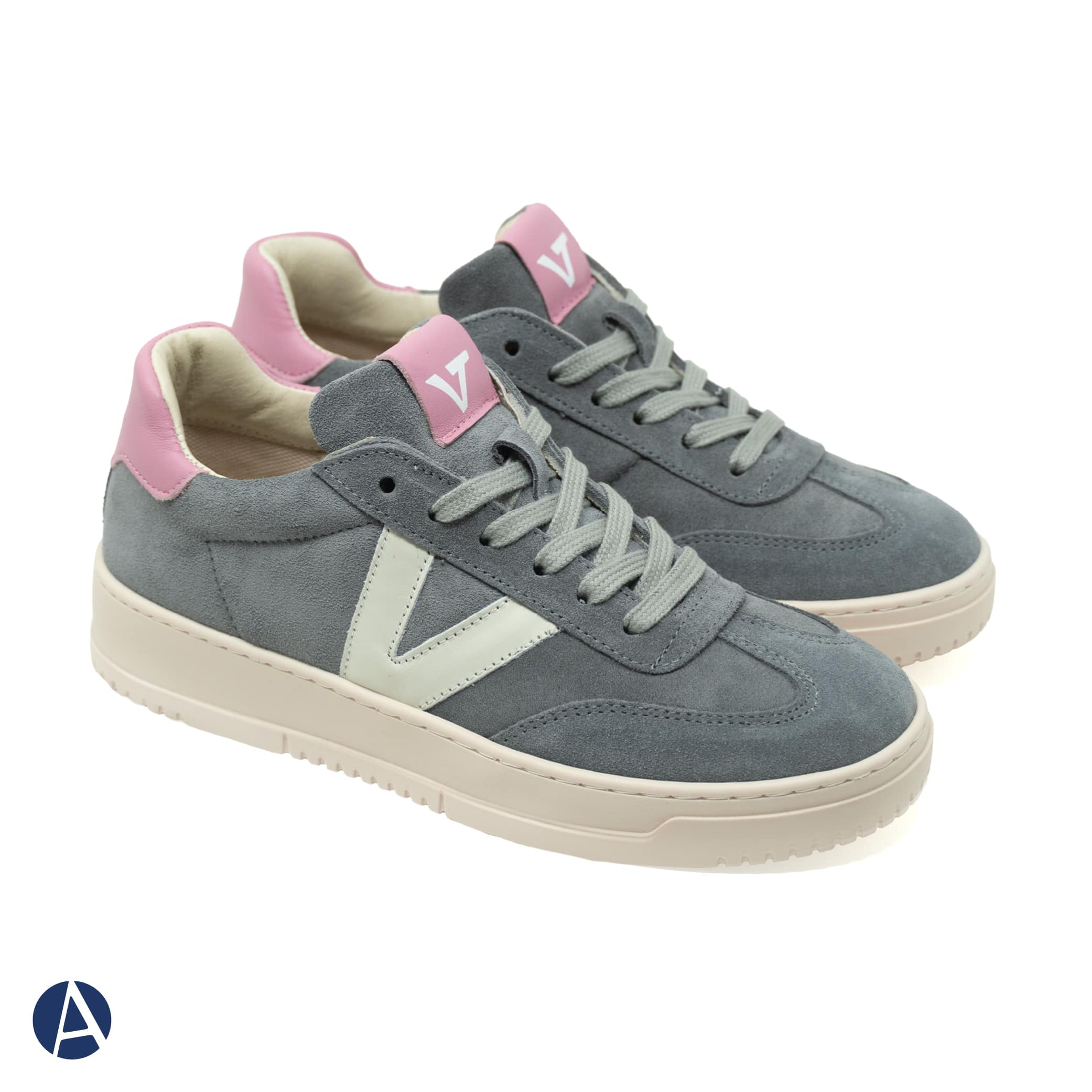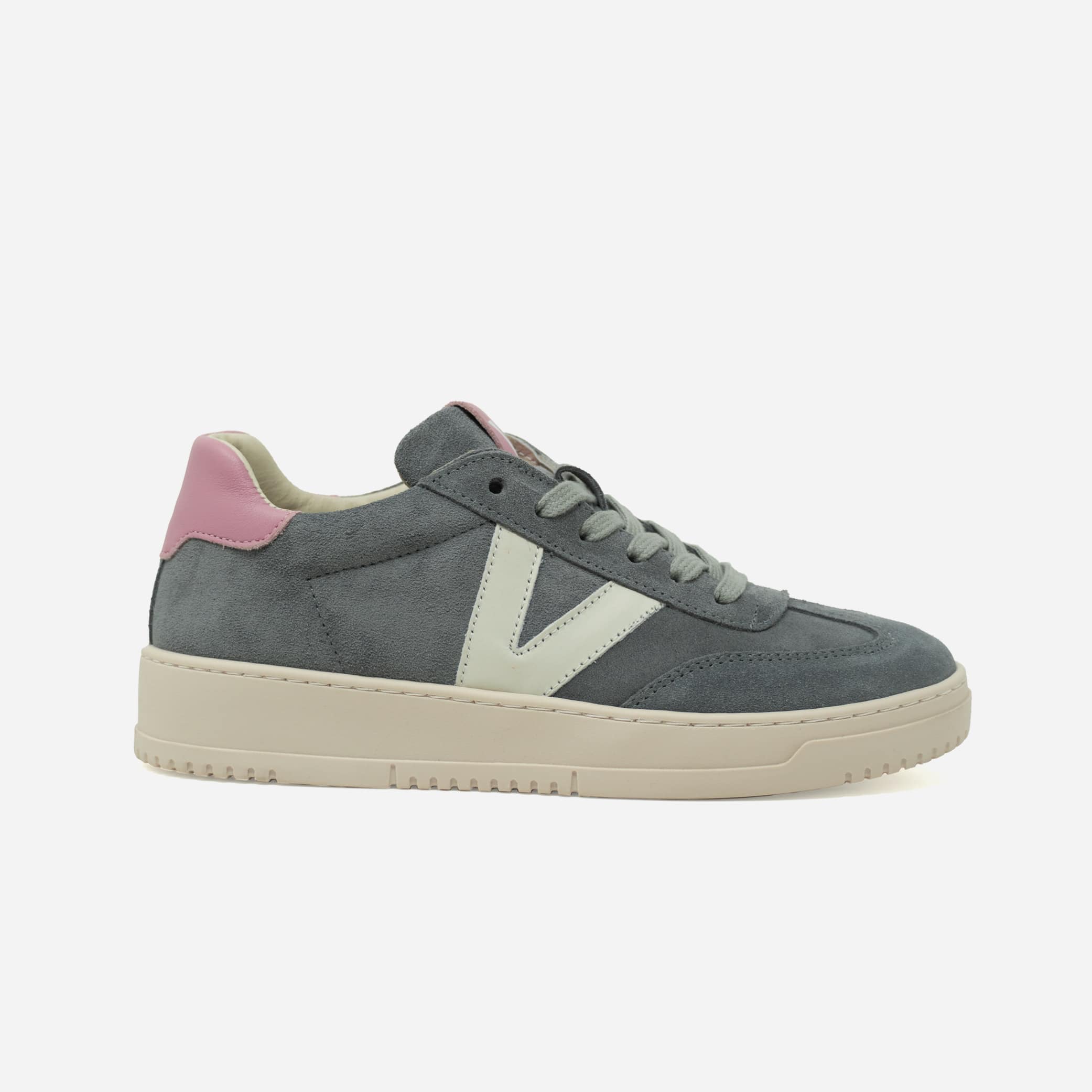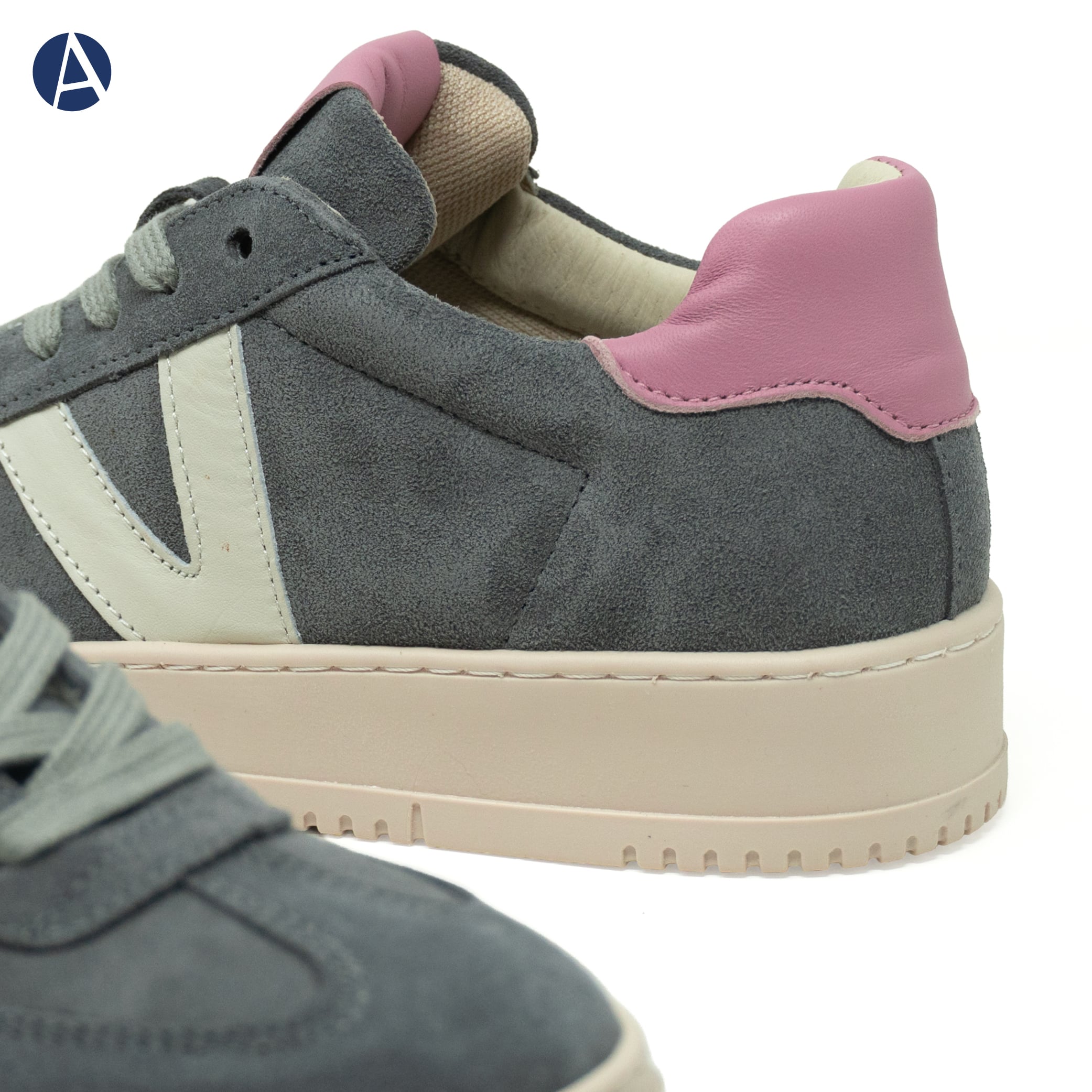 Sneakers donna VITAMINA TU in pelle scamosciata di colore beige e inserti in pelle bianca. Riporti bianchi sul tallone. Calzatura perfetta con i jeans ed outfit informali.