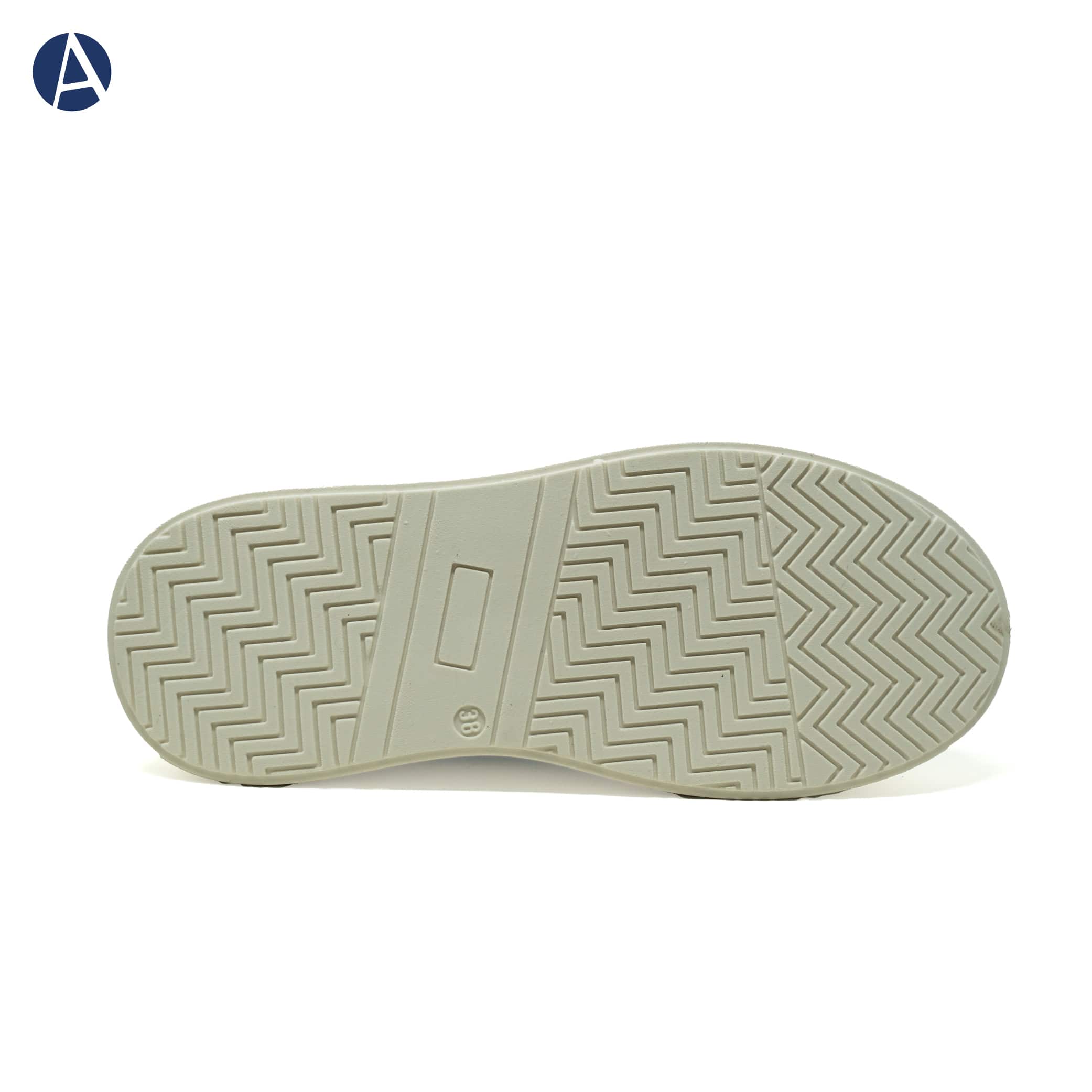 Sneakers donna VITAMINA TU in pelle di colore bianca con inserti in pelle scamosciata beige e platino. Riporti glitter dorato sul tallone. Calzatura perfetta con i jeans ed outfit informali.