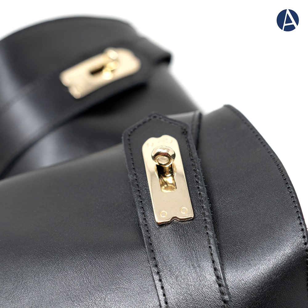 Anfibi donna Attili in pelle di colore nero con lacci e zip laterale per facilitare la calzata, con accessorio in doppia fibbia dorata, fondo carrarmato. Stivali iconici in pelle, perfetti per un look grintoso e versatile, interamente MADE IN ITALY.